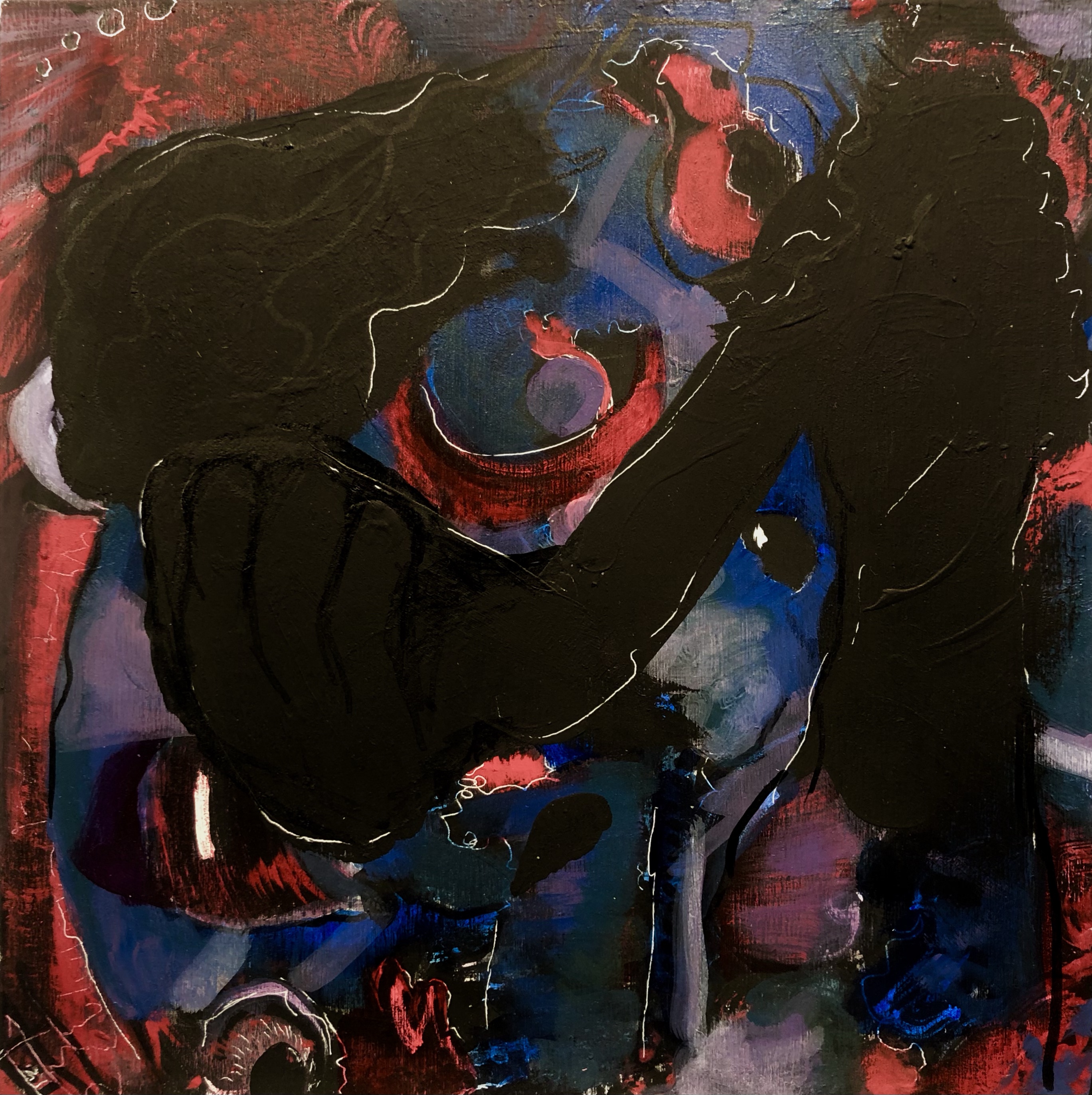 mixed media on wood panel, by Cedar Fox, 8×8, 2022 (available)